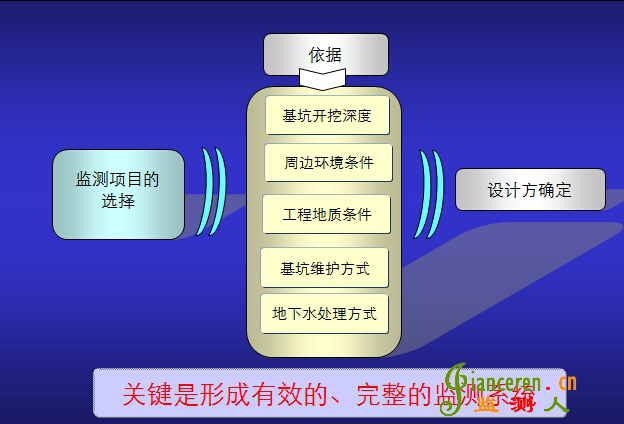 應(yīng)針對(duì)監(jiān)測對(duì)象的關(guān)鍵部位,做到重點(diǎn)觀測、項(xiàng)目配套并形成有效的、完整的監(jiān)測系統(tǒng)